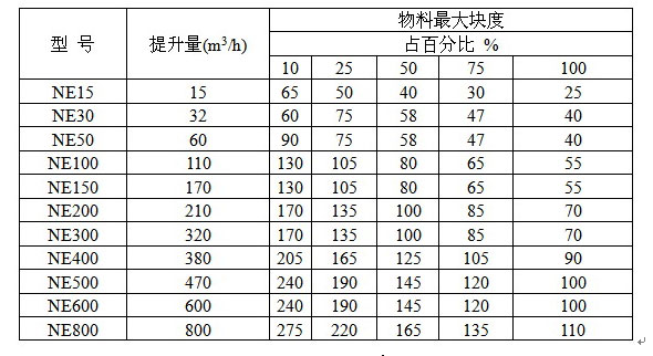 7、輸送能力大,該系列提升機(jī)具有NE15~NE800多種規(guī)格。提升量范圍為15~800m3/h。損耗少,噪聲低,壽命長(zhǎng)。