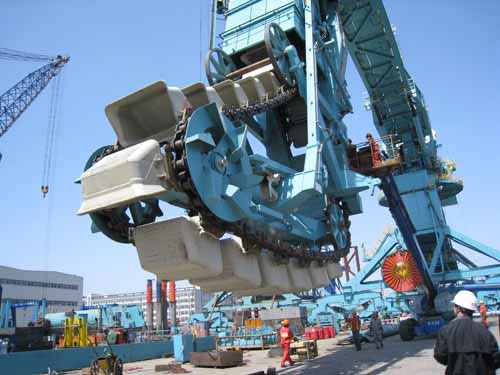 帶斗門座起重機的生產(chǎn)率一般不高于1000t/h。
